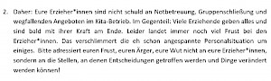 Löst euch von Wut und Frust auf die Menschen, die in euren Einrichtungen arbeiten und lasst uns die Stellen ansprechen, an denen Entscheidungen getroffen werden. Wir müssen politisch werden. Wir müssen laut werden.